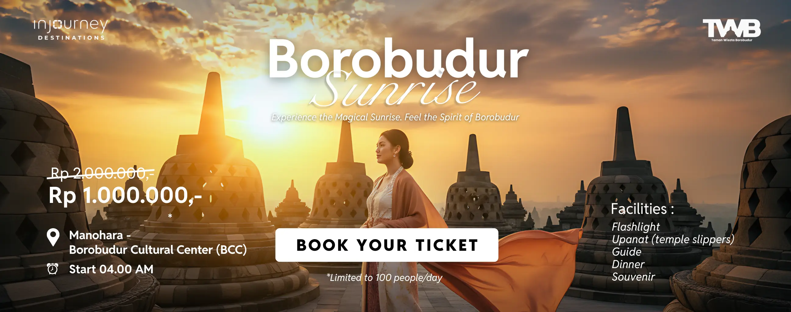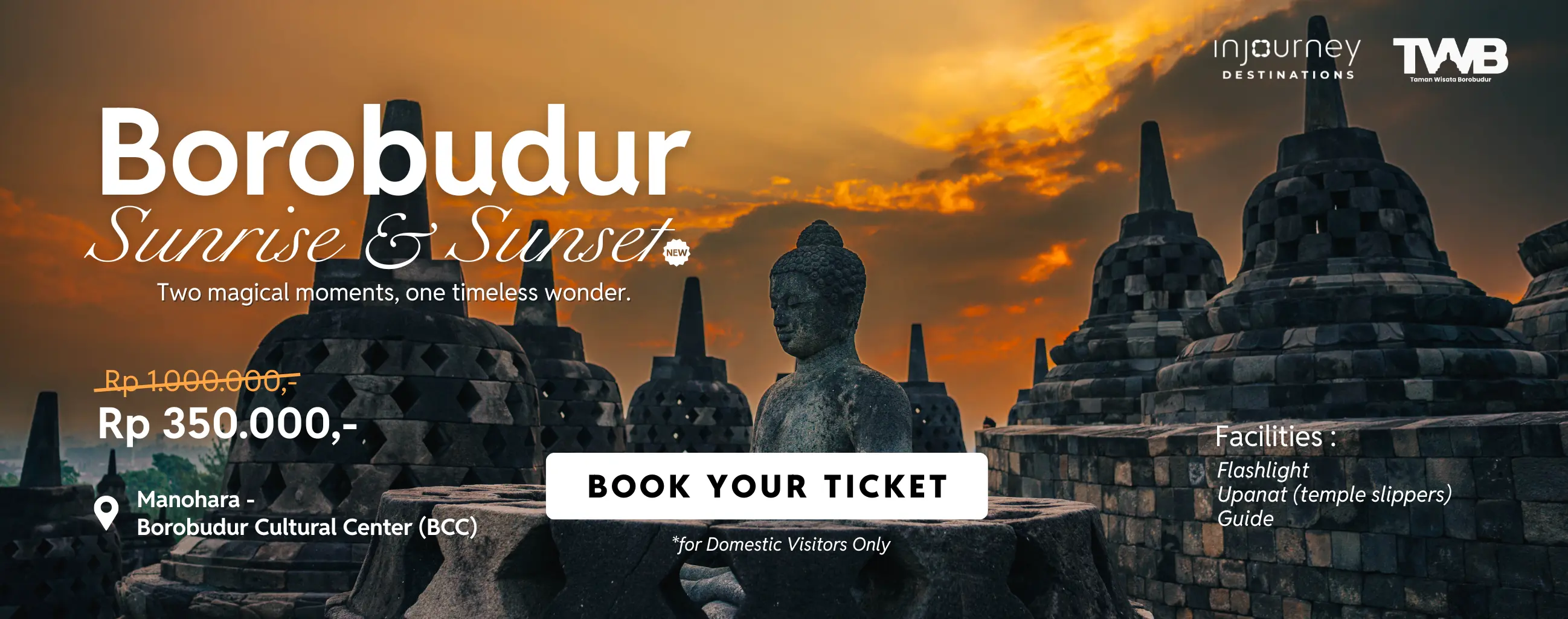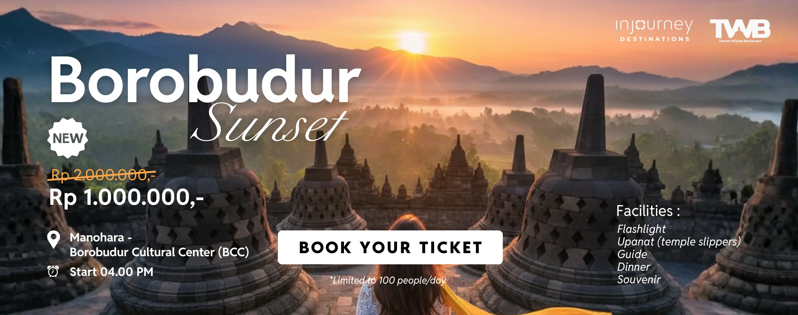 Tiket masuk Borobudur Sunset, lihat matahari terbenam di Borobudur. Termasuk makan malam dan souvenir.