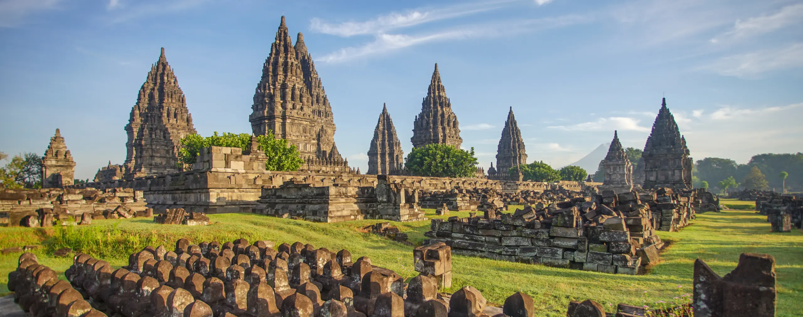 candi-candi yang menjulang membentuk siluet memikat, memberi ruang untuk mengeksplorasi detail arsitektur,